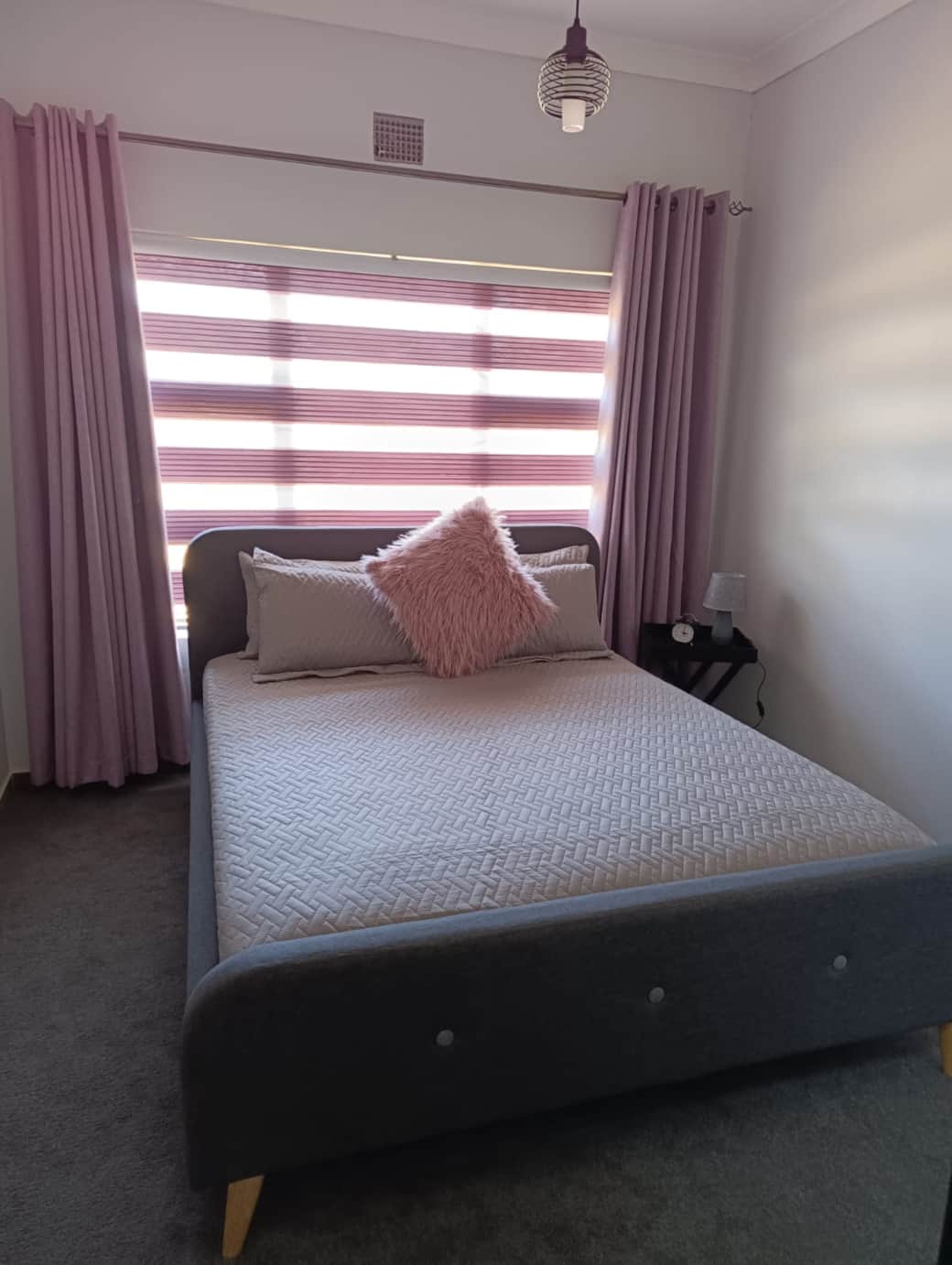 Main ensuite bedroom with blockout curtains for restful sleep