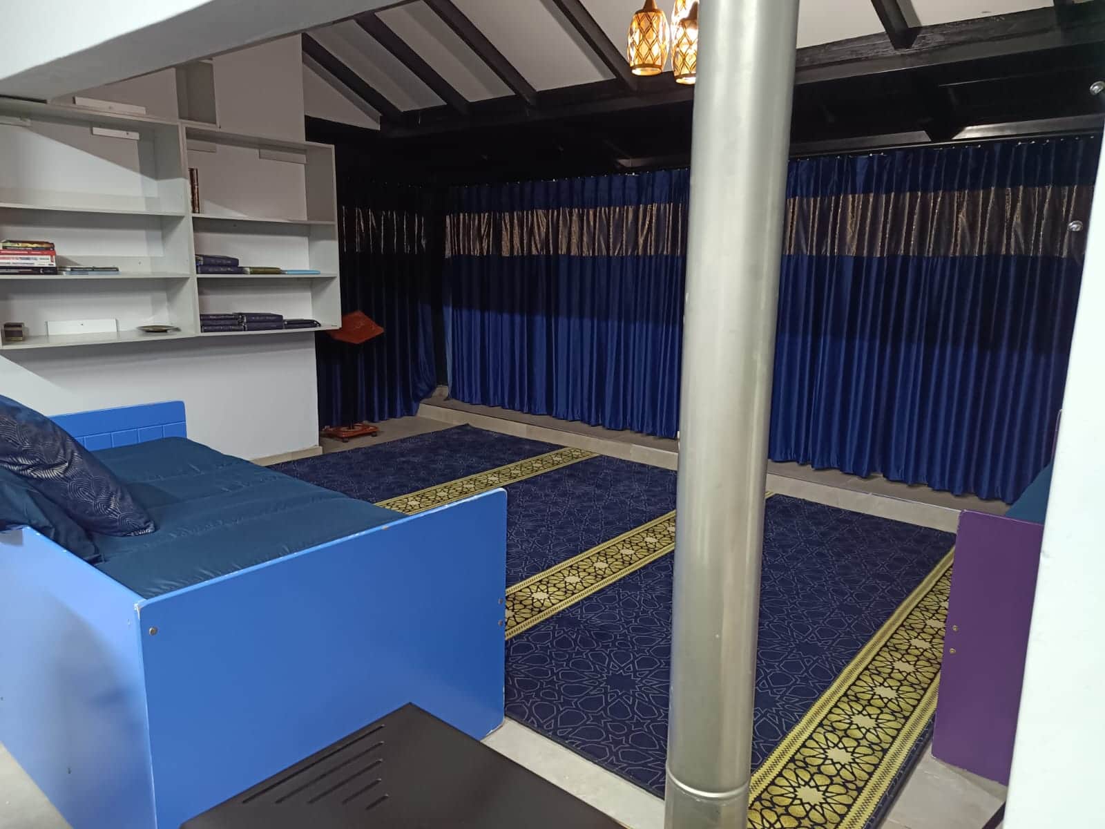 Our guest house features a comfortable musalla that can accommodate up to 15 musallees, making it easy to perform salaah in jamaat during your stay. At Ishraaq time, the musalla becomes even more special — the large windows open to breathtaking sunrise views, filling the room with soft golden light and creating an atmosphere of serenity and reflection.